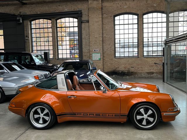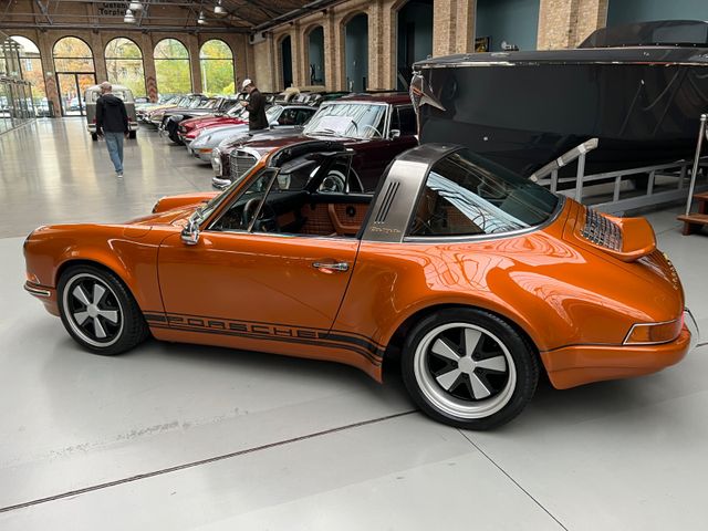 Wir bieten hier ein Porsche 964 Targa in Singer-Optik Backdate mit sehr geringer Laufleistung an. Dieses Fahrzeug ist ein absolutes Einzelstück. H-Kennzeichen Abnahme erteilt deutscher Brief vorhanden Attention please: NO TRADING OFFERS PLEASE!!! No trading possible!!! - Innenausstattung Volleder braun, perforiert = absolute Einzelanfertigung - speziell angefertigte Heckablage mit originalen Handschuhfächern - Bi-Xenon Scheinwerfer - Automatik Getriebe - Klimaanlage - Sportfahrwerk verbaut - technisch guter-sehr guter Zustand - Umbauarbeiten überwiegend in Metall realisiert - Braid-Felgen sonderangefertigt - Doppelrohr Sportauspuffanlage - Reifen neu; Inspektion neu; Bremsen neu Die Laufleistung vor dem Umbau betrug 96Tkm. Der Targa wurde aus den USA als rostfreies Fahrzeug importiert. Wenn Inzahlungnahme – dann nur 911 anbieten! Kein Tausch oder Ähnliches! Attention please: NO TRADING OFFERS PLEASE!!! No trading possible!!!