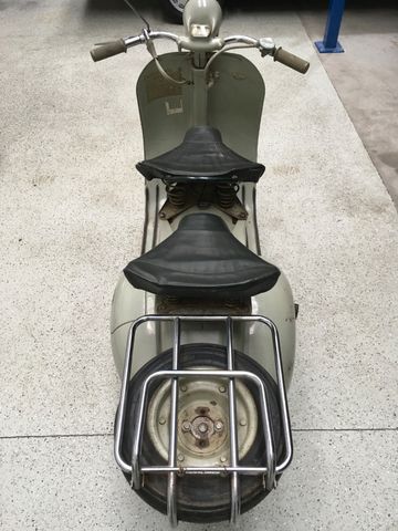 Achtung: Es gibt noch weitere Scooter-Raritäten im Angebot – siehe andere Fahrzeugangebote... ORIGINALZUSTAND + ERSTLACK!!! Wir bieten hier eine Vespa Acma 125ccm an. Baujahr 1957 Komplett im Originalzustand + Erstlack - Frankreich Import aus einer Sammlung - voll funktionstüchtig - Tank gespült und dauerhaft vor Korrosion geschützt - originales Typenschild vorhanden - originale Bedienungsanleitung vorhanden - steht auch seit Jahren als Deko-Objekt in unserer Sammlung Es liegt ein deutscher TÜV-Bericht von 05/2022 vor, weiterhin gibt es ein Gutachten zur Erlangung einer Einzelbetriebserlaubnis. Somit ist die Vespa – nach TÜV-Erneuerung – direkt zulassungsfähig.